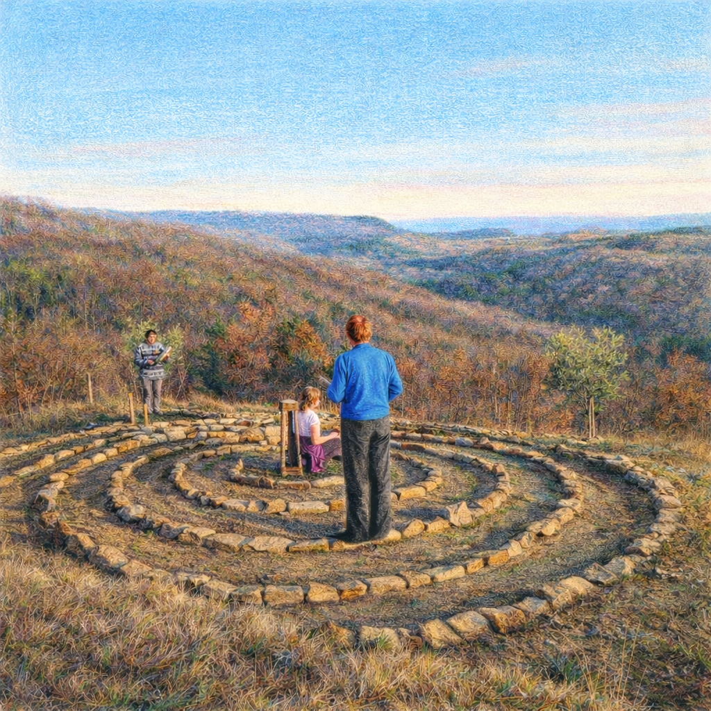 Pred samim vstopom v labirint poteka kratek uvodni pogovor, ki obiskovalcu pomaga pripraviti se na doživetje in uskladiti svojo energijo s prostorom. Pogovor je priložnost, da razjasnimo namen obiska in ustvarimo varno ter sproščeno okolje za osebno izkušnjo.